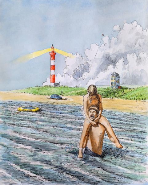 40 x 230 cm | Aquarel en inkt op papier | 2025
